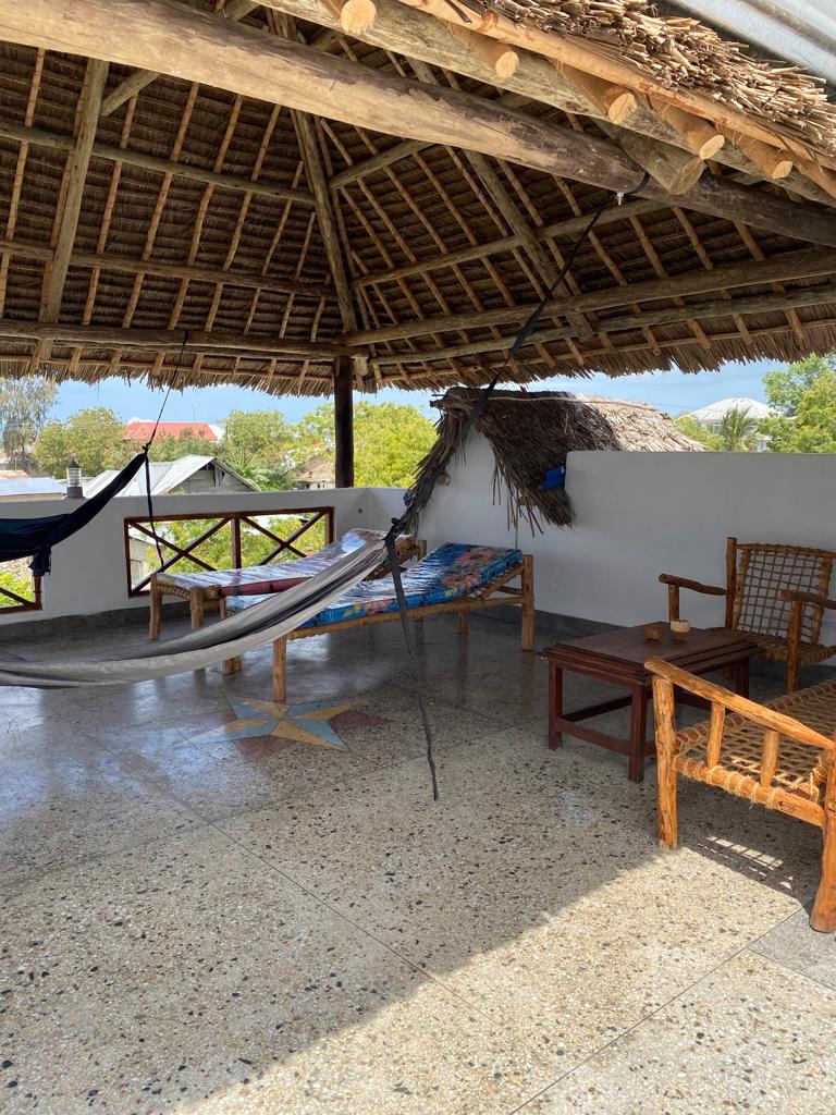 Auf der Dachterrasse kann das Frühstück genossen oder der Sonnenuntergang in der Hängematte bewundert werden.